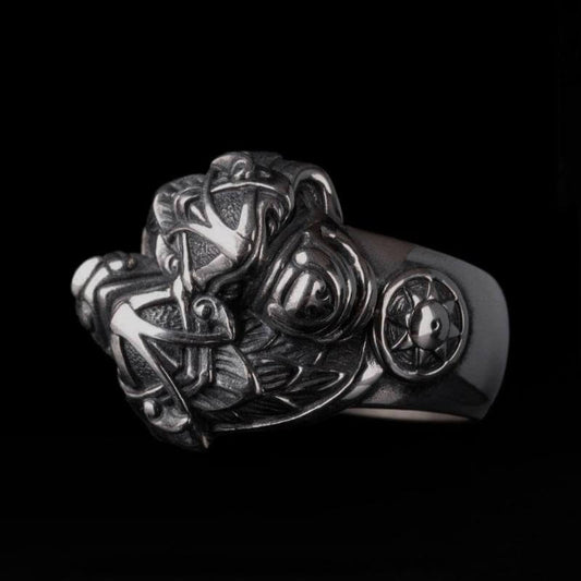 Håndlaget Fenrir Ring med Viking Ornament Sterling Sølv Ring