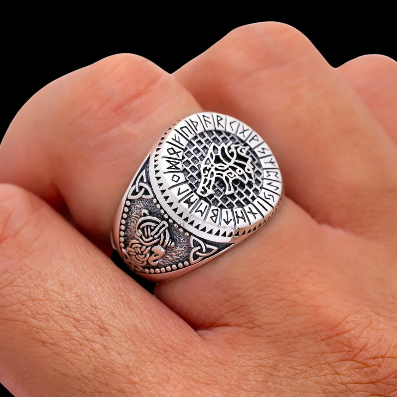 I hjertet av denne ringen er Fenrir, den monstrøse ulven som er skjebnebestemt til å bringe Ragnarok. Født av Loki og Angrboda, er Fenrir mer enn et dyr; han er legemliggjørelsen av kaos, rå kraft og den uunngåelige brytningen av gamle ordener.