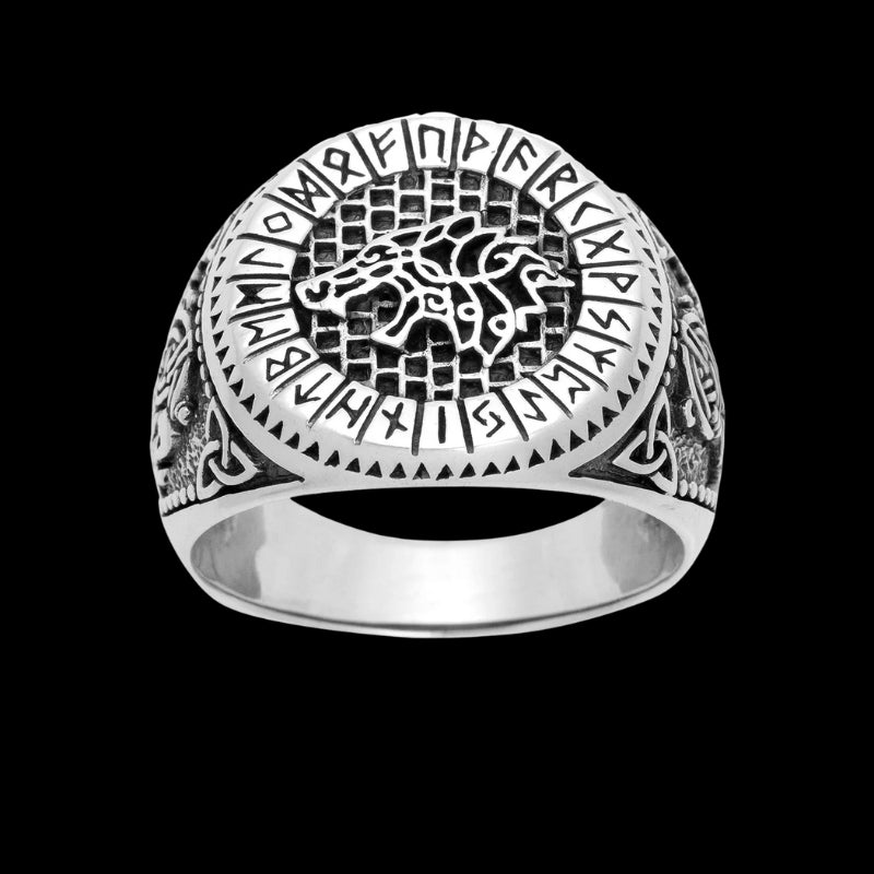 925 Sterling sølv Viking ulv og norrøne runer ring