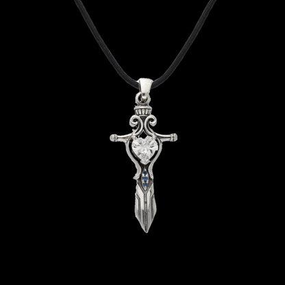 Håndlaget norrønt sverd Cubic Heart Zirconia sølv Sterling anheng