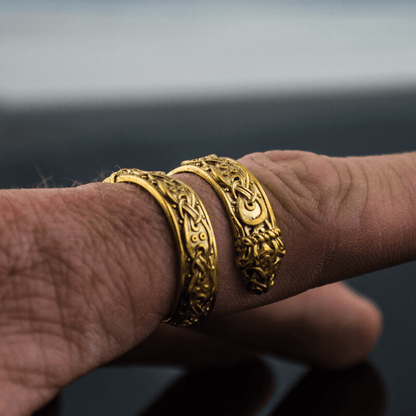 Håndlaget Ouroboros Ornament Norse Gold Ring