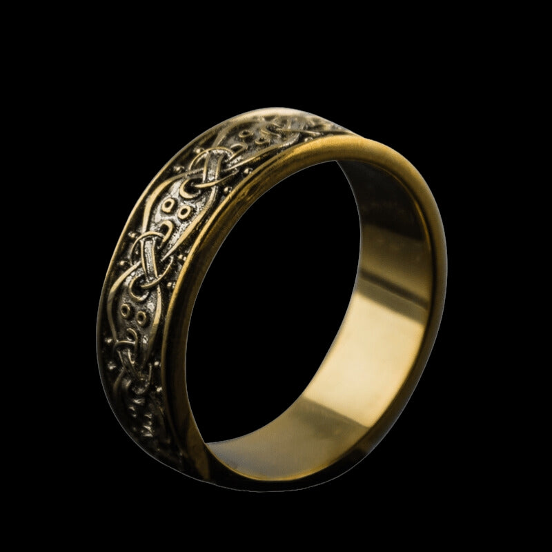Denne ringen er ikke bare et tilbehør; det er et nikk til fortiden, et stykke som legemliggjør ånden og styrken til vikingkrigerne. Med hver detalj taler den til de som verdsetter historiens rike billedvev og kunsten som har gått i arv gjennom generasjoner. Den er designet for den moderne vikingen, noen som setter pris på den undervurderte, men likevel særegne sjarmen til norrøn kultur.