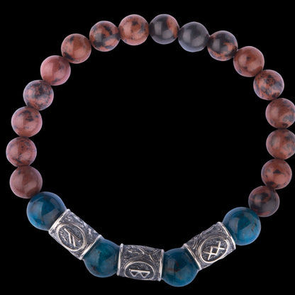 Vikingarmbånd med apatitt og rød obsidian og runer
