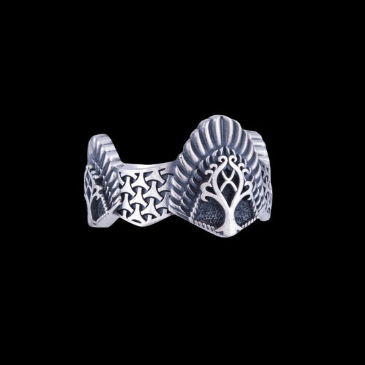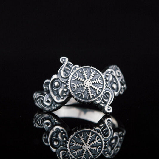 Håndlaget Helm of Awe Symbol Raven Sterling Sølv Ring