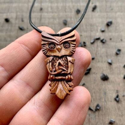 Ręcznie rzeźbiony unikalny drewniany wisiorek w stylu celtyckiej sowy Triquetra 4