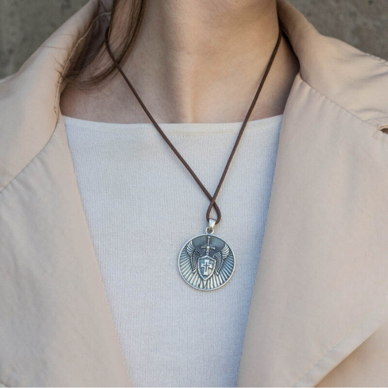 Wykonane ręcznie z najwyższą dbałością o szczegóły, z najwyższej półki Srebro próby 925, ten wisiorek to coś więcej niż tylko biżuteria; jest latarnią nadziei i symbolem boska opieka. Wysokiej jakości srebro nie tylko dodaje atmosfery wyrafinowania, ale także zapewnia trwałość wisiorka, dzięki czemu będzie trwałą pamiątką.