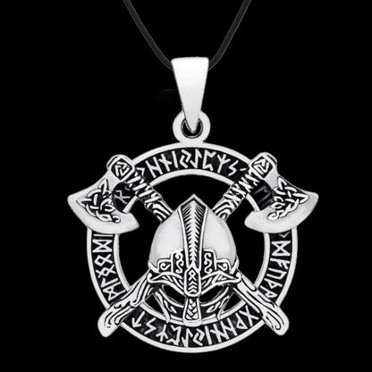Ten wisiorek dumnie prezentuje skrzyżowane wikingów topory, symbol siły, odporności i gotowości do walki. W centrum hełm wojownika reprezentuje ochronę i niezłomnego ducha tych, którzy walczyli o honor i przetrwanie.