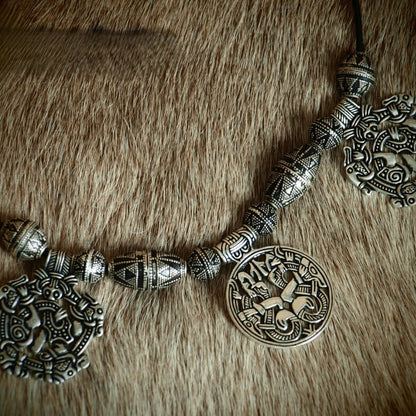 Ten piękny naszyjnik składa się z trzech wisiorków i kilku koralików, a wszystkie inspirowane są fragmentami znalezionymi w skarbie Vårby w dolinie Mälaren w środkowej Szwecji, datowanym na X wiek.