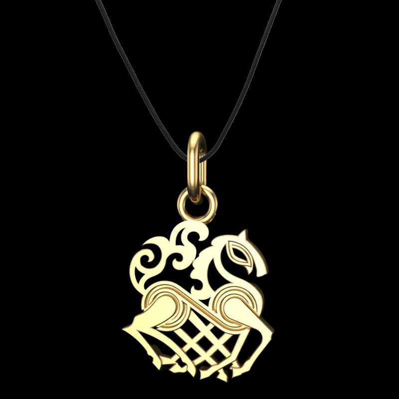 • Smukły złoty wisiorek z koniem Odyna Sleipnira, mistrzowskie przedstawienie mitologii nordyckiej.
