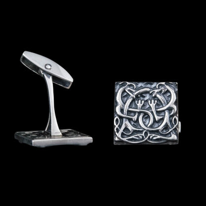 Styl Urnes to jeden z najbardziej rozpoznawalnych symboli kunsztu Wikingów, nazwany na cześć słynnego kościoła klepkowego w Urnes w Norwegii. Przeplatające się linie i zwierzęta widoczne na tym projekcie odzwierciedlają kunszt, który definiował późniejszy okres Wikingów, od połowy XI do początku XII wieku. Te spinki do mankietów stanowią doskonały hołd dla tego dziedzictwa kulturowego.