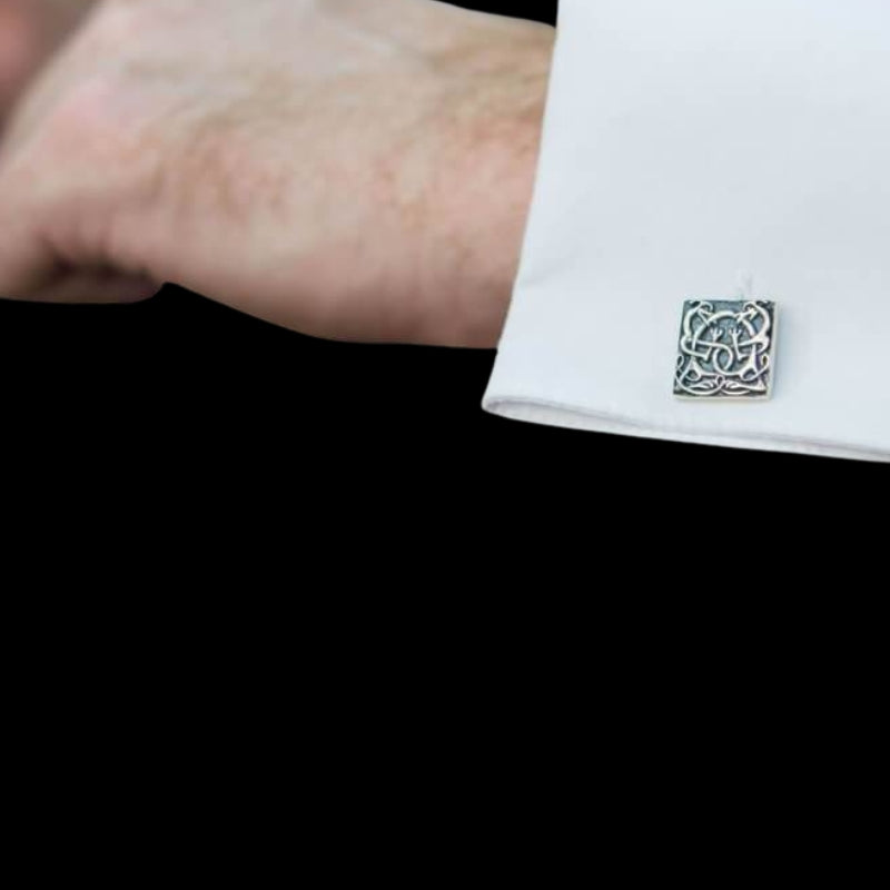 Ręcznie wykonane unikalne norweskie kwadratowe spinki do mankietów v3 ze srebra sterling