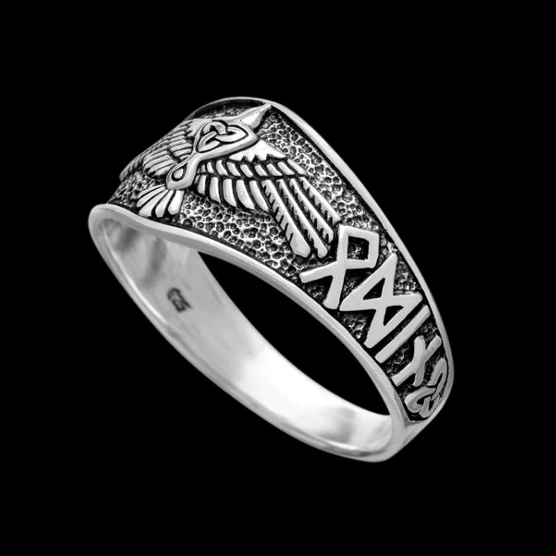 Kruk z runicznym pismem Heil Odin, srebro 925