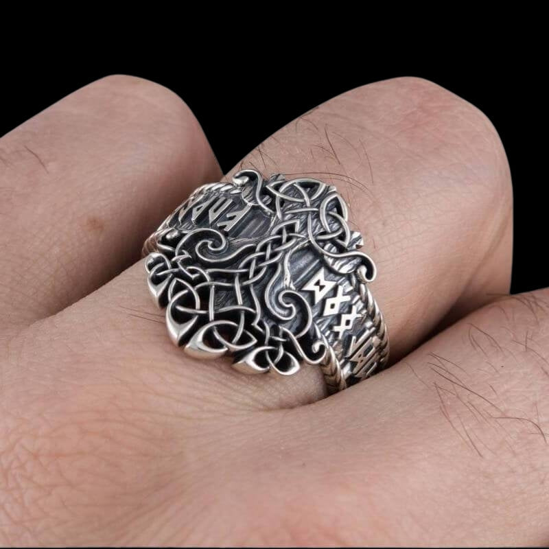 Ten srebrny sygnet, ozdobiony wizerunkiem Yggdrasila i wygrawerowanymi nordyckimi runami, to coś więcej niż tylko biżuteria. To hołd dla zawiłego gobelinu losu, mądrości bogów i trwałego ducha światopoglądu Wikingów. Idealny dla tych, którzy odnajdują sens w kosmologii nordyckiej i wyznają takie wartości, jak odwaga, poświęcenie i mądrość.