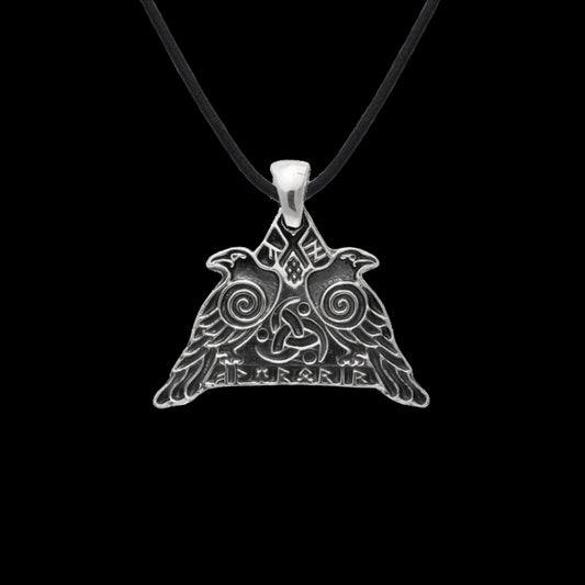 Płaski pierścionek z hełmem kruków podziwu, srebro