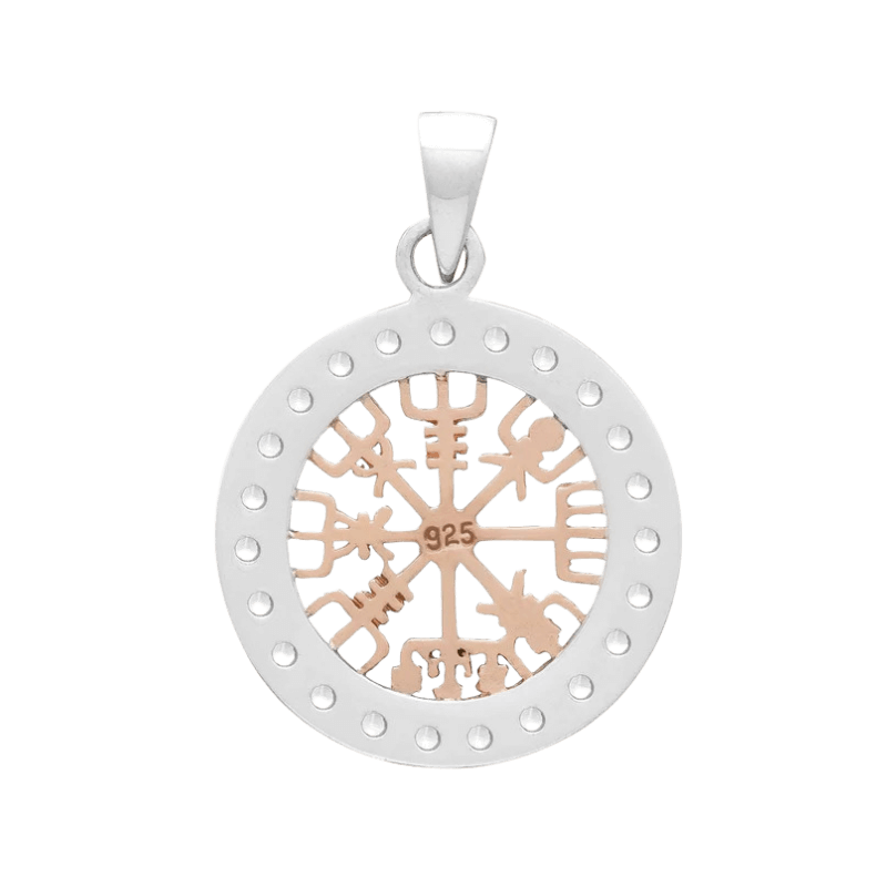 925 Sterling Silver with Rose Gold Vegvisir Pendant