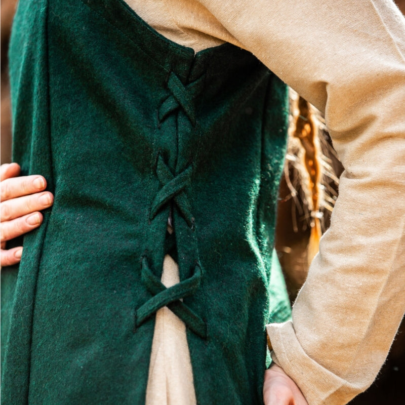 Ideal for reenactments, festivals, or simply staying warm in a stylish and historically inspired way, the "Aila" tracksuit is a versatile piece that brings the Viking age into your wardrobe. Please note that brooches, belts, and the ecru underdress are not included.