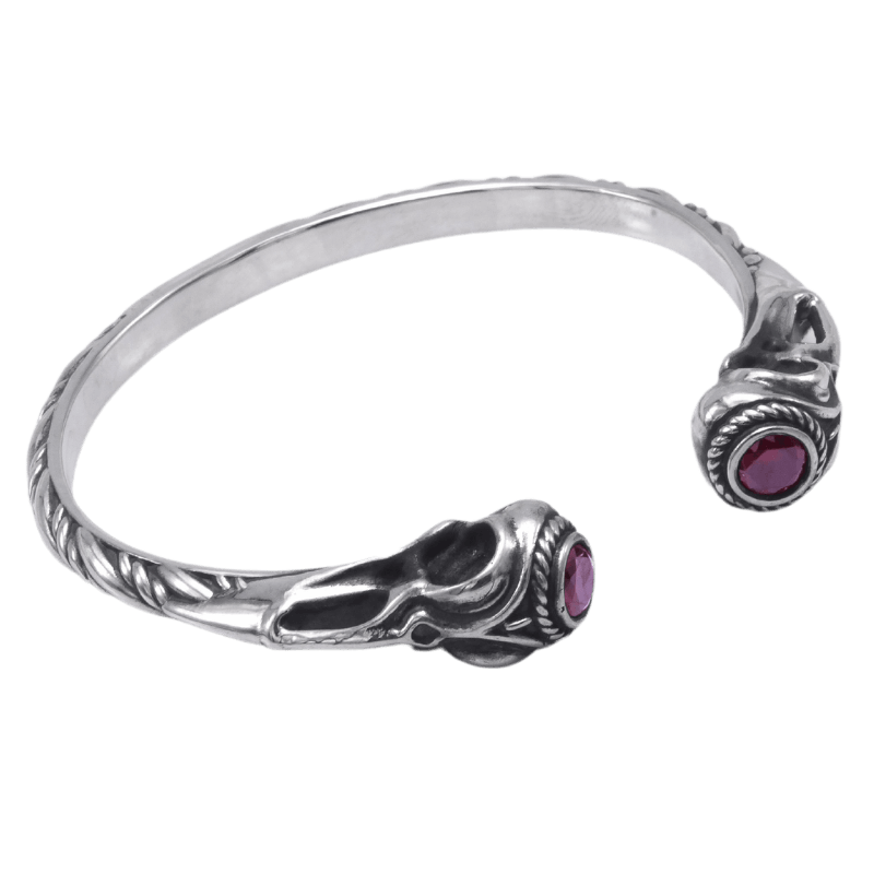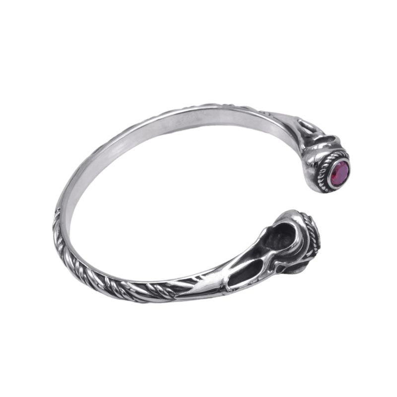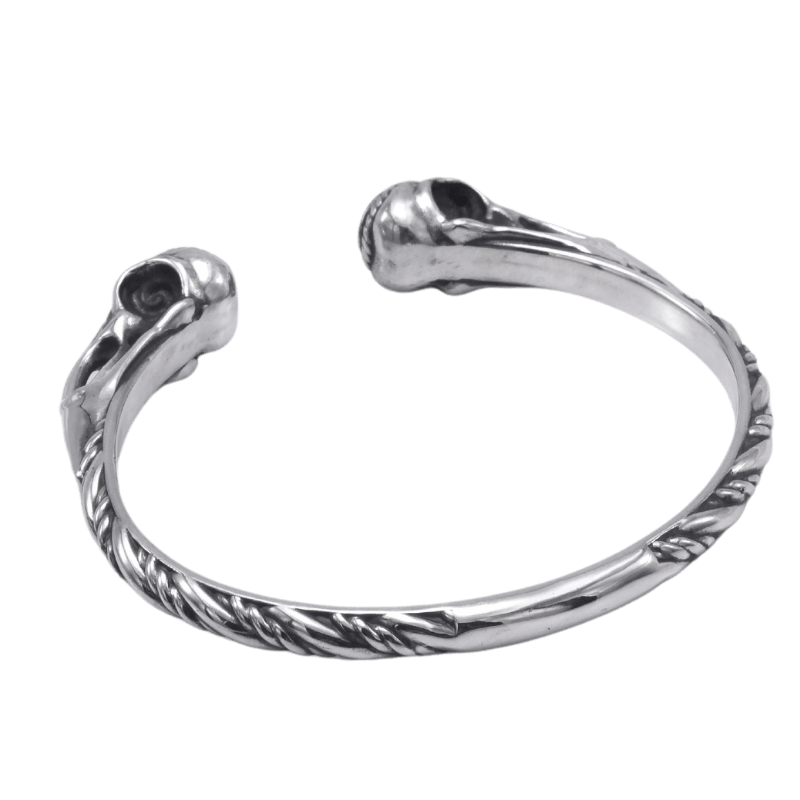 This stunning arm ring, featuring two raven skulls, is perfect for those who honor Odin All-Father.