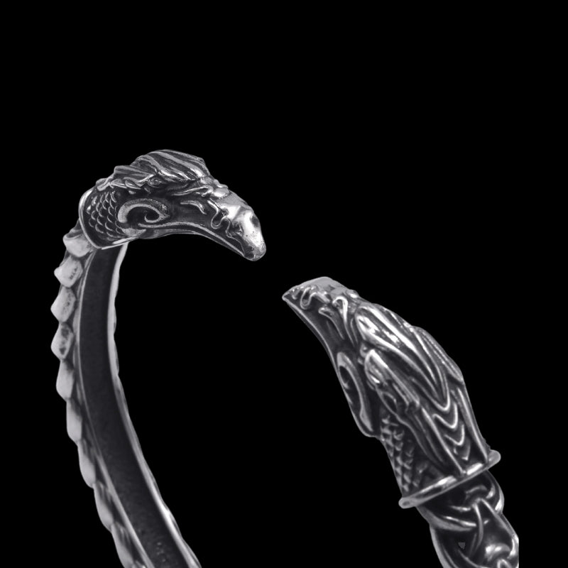 The Vikings often wore arm rings that represented oaths they had sworn to their king or their gods. This arm ring featuring two raven heads is perfect for anyone sworn to Odin.