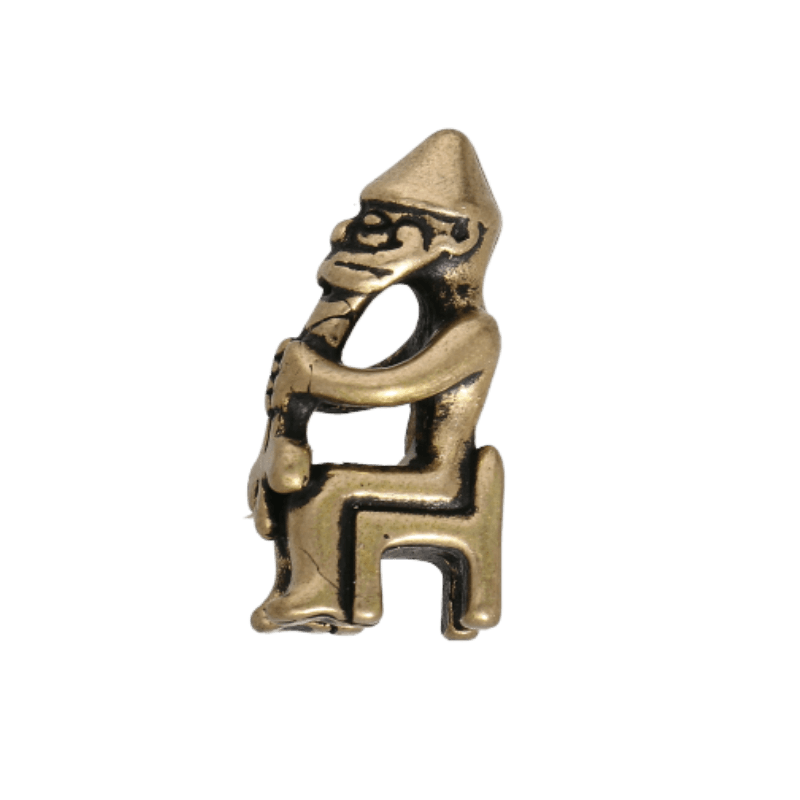 The piece is assumed to represent Thor, the god of thunder. The strongest of the gods, he was responsible for protecting the cosmos from the chaotic forces of the giants. For this, he used his mighty hammer Mjolnir. The god seems to be using his beard to create the shape of the hammer.