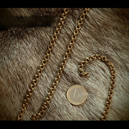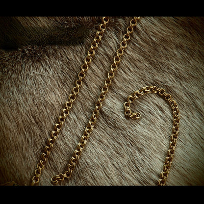 This chain is sold in pieces of 5 cm, with the option to select your desired length. All chains purchased in a single order will be sent as one continuous piece, allowing for customizable use. Embrace the versatility and strength of Viking culture with this handcrafted brass chain.