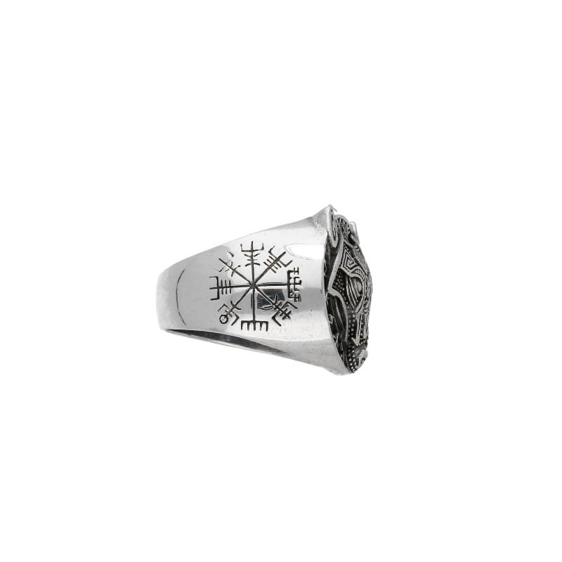 The sides of the ring are marked with Vegvisir, a magical symbol found in the Icelandic magical grimoires. It is a wayfinding symbol, use it, and you will never lose your way, even if you don't know your final destination.