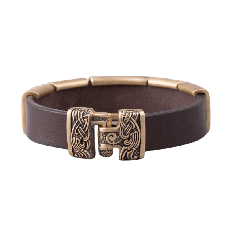 This handcrafted bracelet draws from the deep well of Norse mythology, capturing the essence of the Viking cosmos through its symbolic engravings.