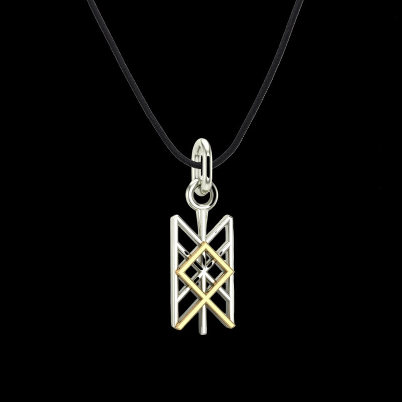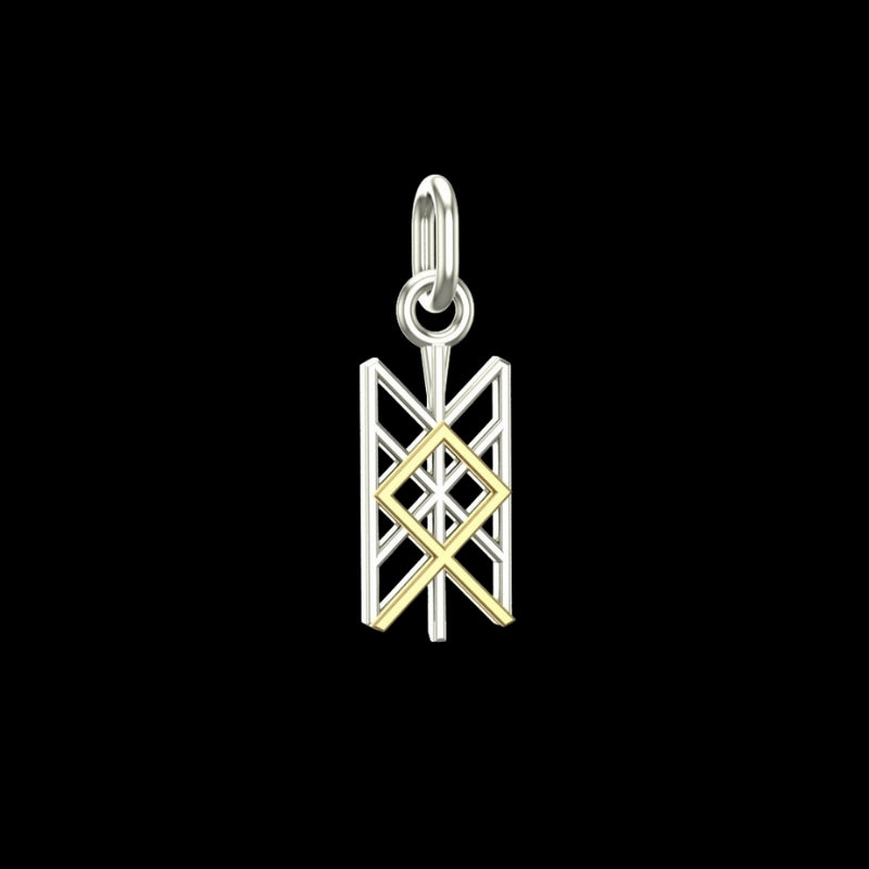 This stunning gold and silver pendant features the Othala rune, a powerful symbol in both Viking and Celtic traditions. The Othala rune represents heritage, inheritance, and the connection to one’s ancestral roots. In Norse mythology, this rune is closely tied to the idea of legacy, both material and spiritual, passed down through generations.