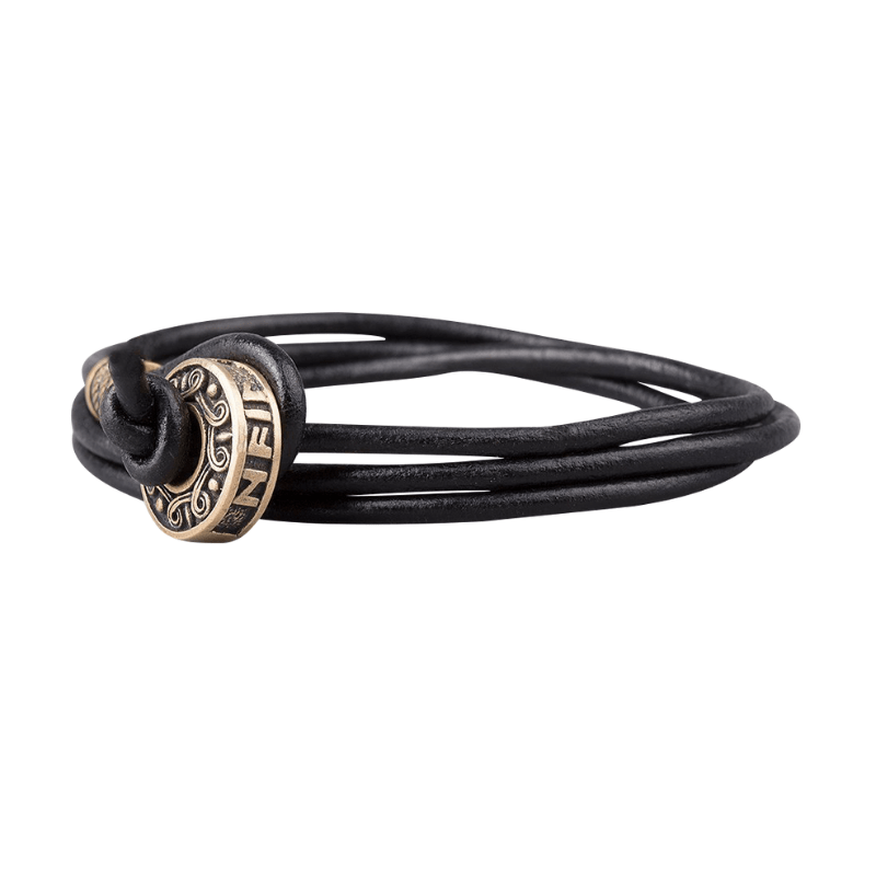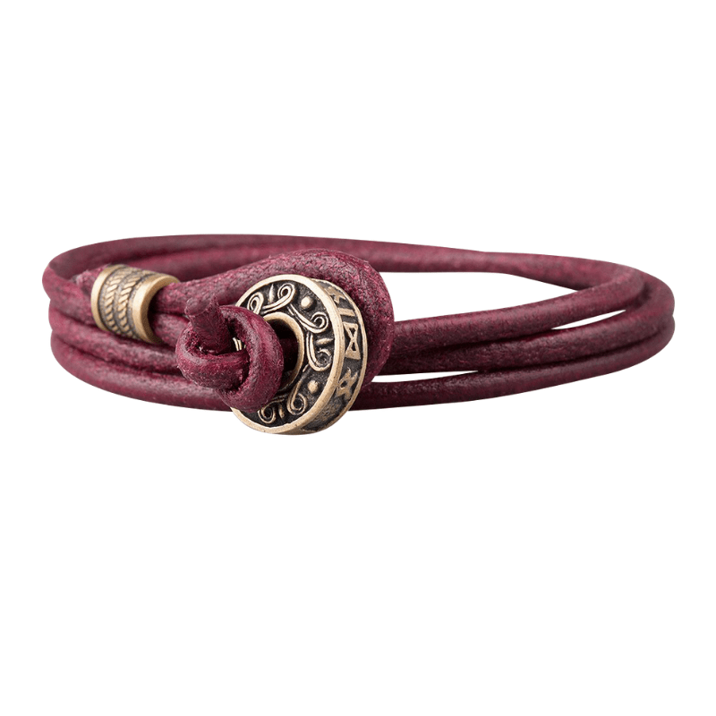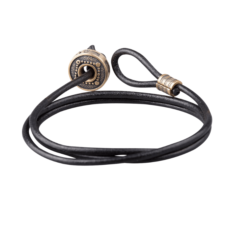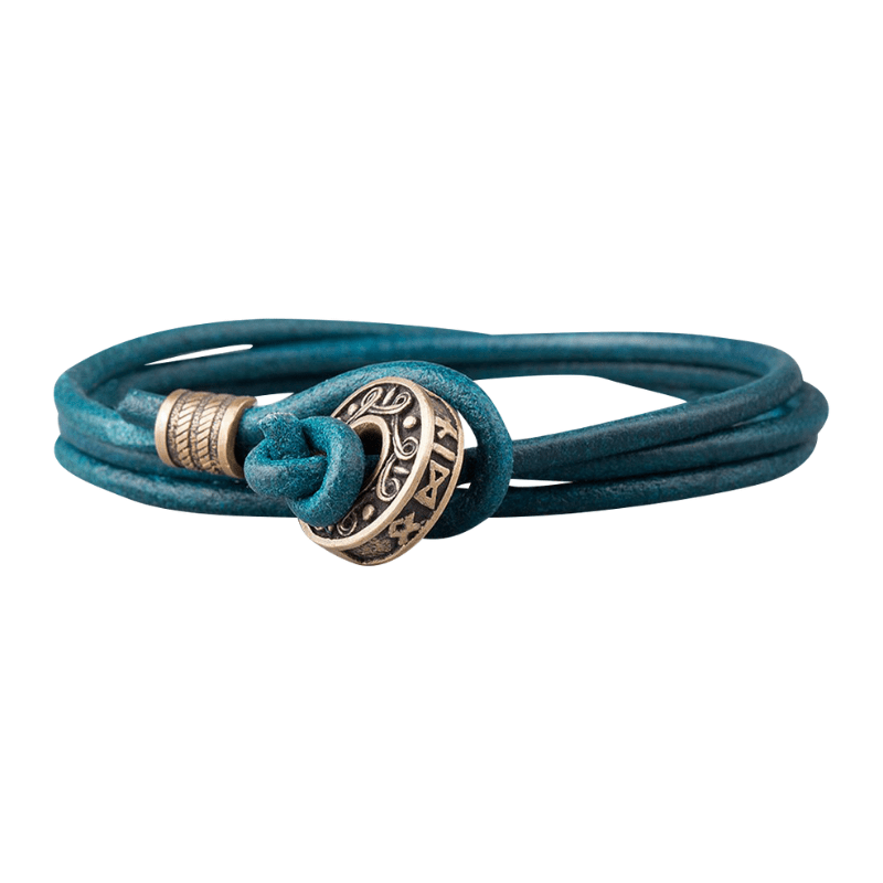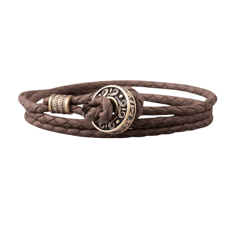 Handcrafted Hail Odin Bronze Bead Leather Bracelet