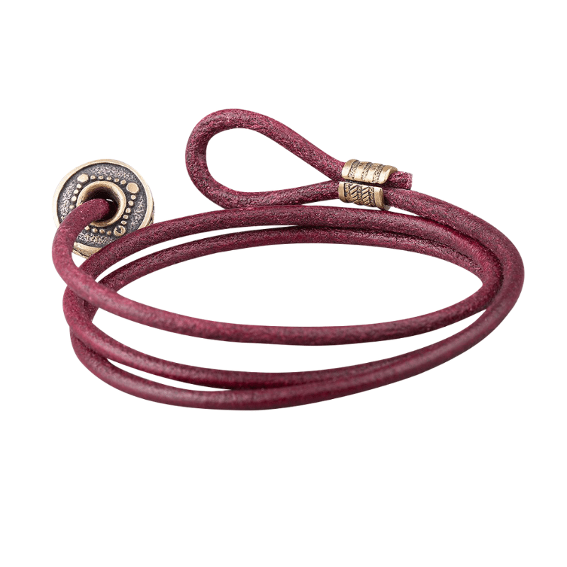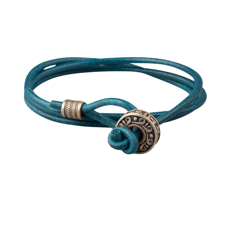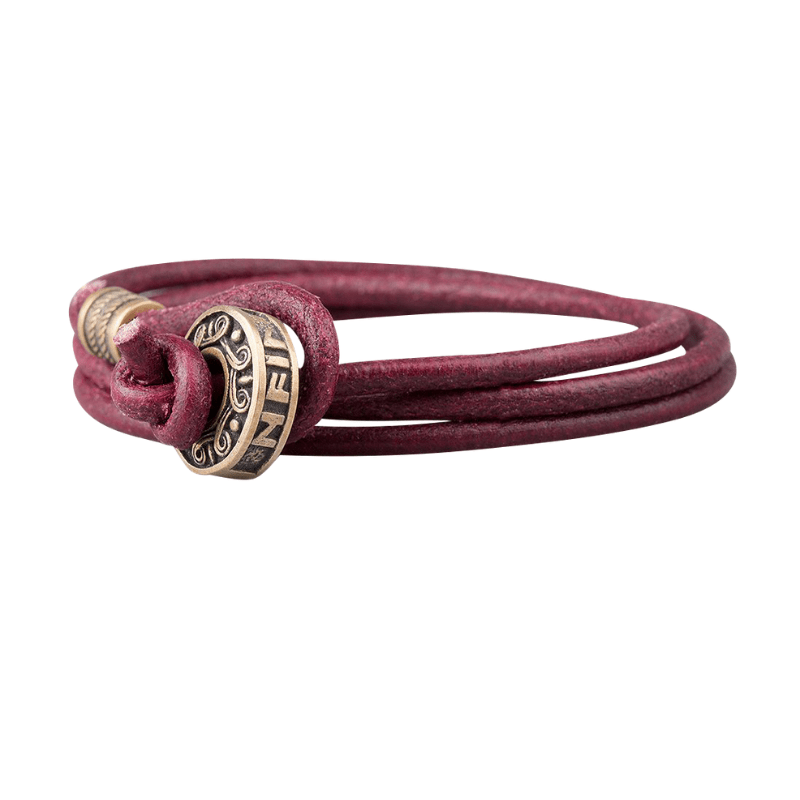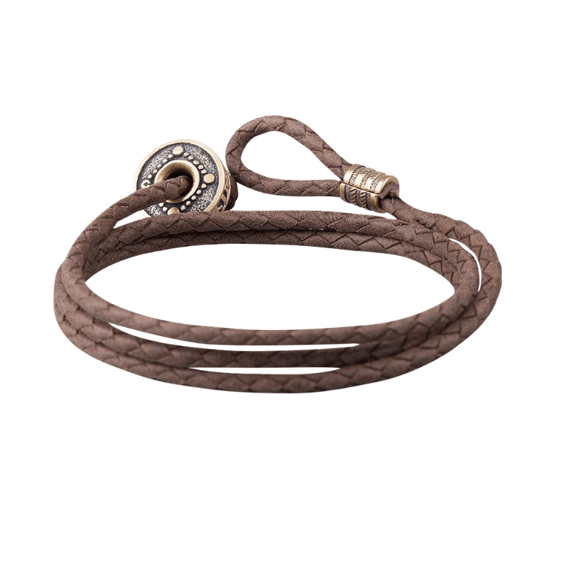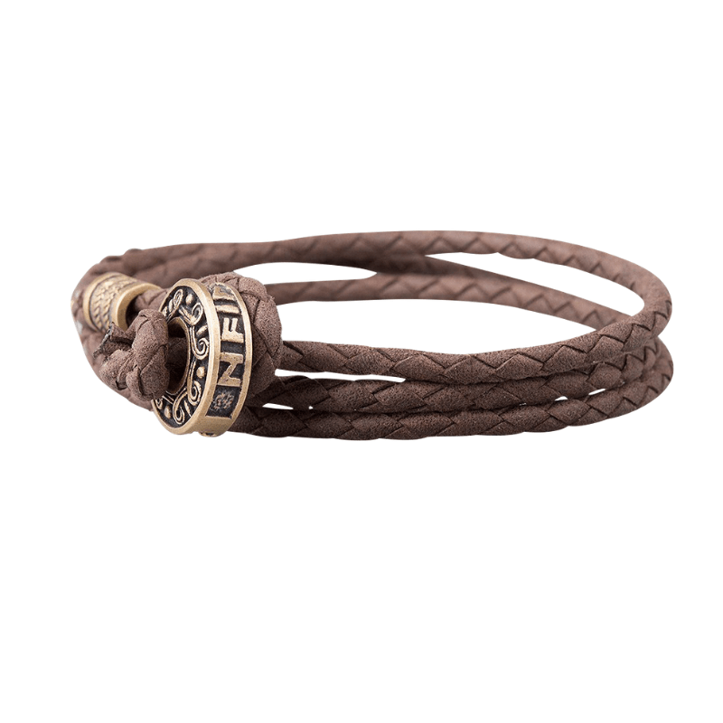 Handcrafted Hail Odin Bronze Bead Leather Bracelet