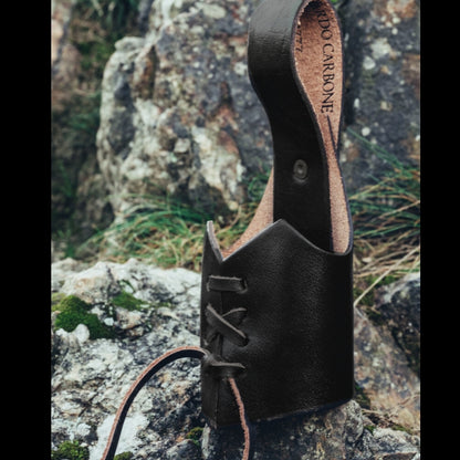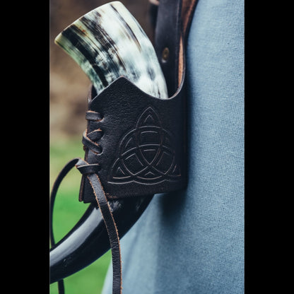 "Hakon” Leather Viking Drinking Horn Holder Black