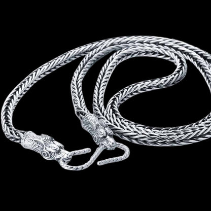 Handcrafted Sterling Silver Wheat Chain with Wolf Head Tips,Norse Jewelry