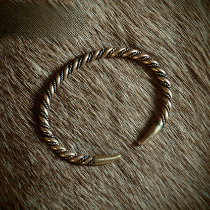 The design features intricately twisted bronze wires, echoing the craftsmanship and style prevalent in Viking-era Europe. This bracelet is not just an accessory but a piece of history, embodying the strength and resilience of the Vikings.