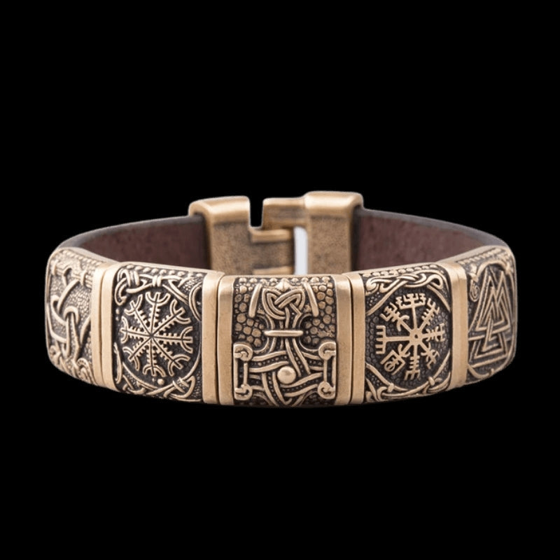 Each symbol is carefully engraved on bronze or silver-plated disks, set against a backdrop of premium Italian leather, creating a striking piece that resonates with the enduring power of the Norse gods. Wear this bracelet as a tribute to the enduring legacy of the Vikings and the ancient symbols that continue to inspire strength and guidance.