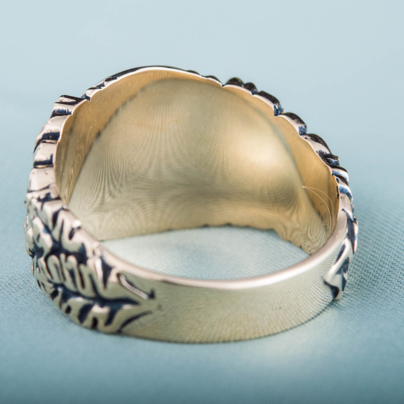 Handcrafted Jormungandr Symbol Oak Leaves and Acorns Bronze Ring