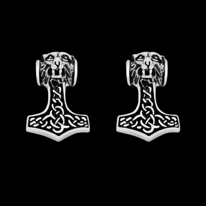 These sterling silver earrings capture the essence of Mjolnir, not just as a weapon but as a sacred emblem of protection, resilience, and strength. The intricate knotwork, a hallmark of Viking artistry, and the wolf motif signify the indomitable spirit of the natural world, reflecting the Vikings' deep reverence for these powerful creatures.
