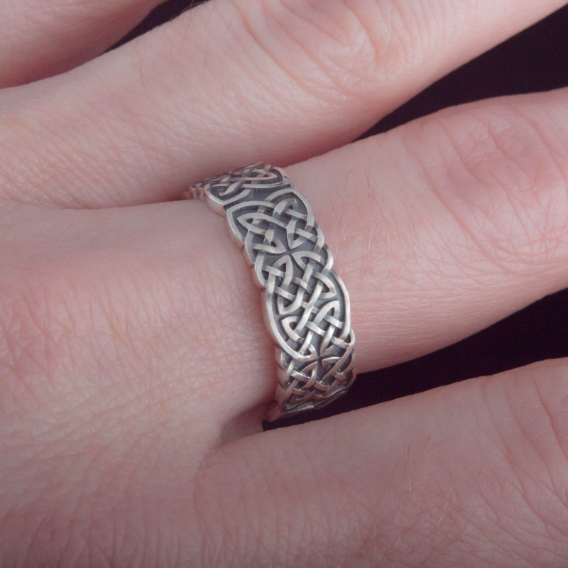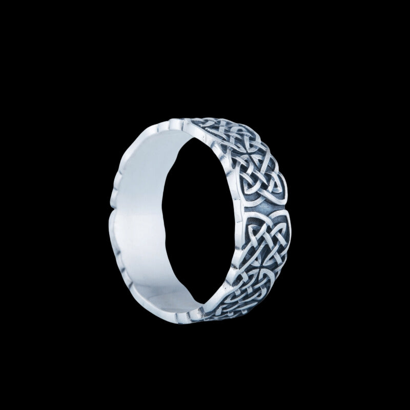 The artistry of the Vikings is often recognized by its intricate geometric patterns and abstract representations of animals, stylized into a harmonious blend of form and design. This sterling silver ring pays homage to those traditional artistic expressions, capturing the essence of Viking creativity through its interwoven line work.