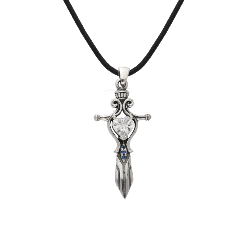 Handcrafted Norse Sword Cubic Heart Zirconia Silver Sterling Pendant