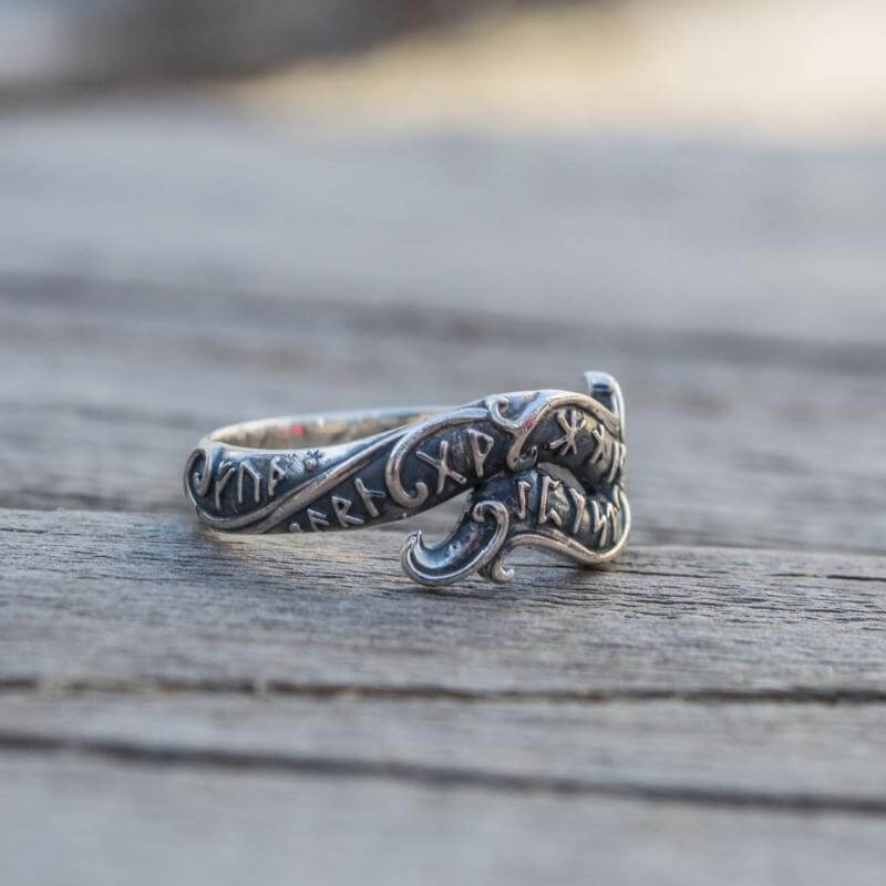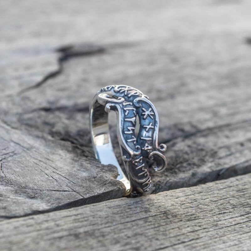 Adorned with Viking runes, this ring is more than an ornamental piece; it's a wearable connection to the Norse belief in the transformative power of the runes—a guide through life's tumultuous journey.