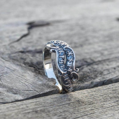 Handcrafted Ouroboros Runes Symbol Sterling Silver Ring