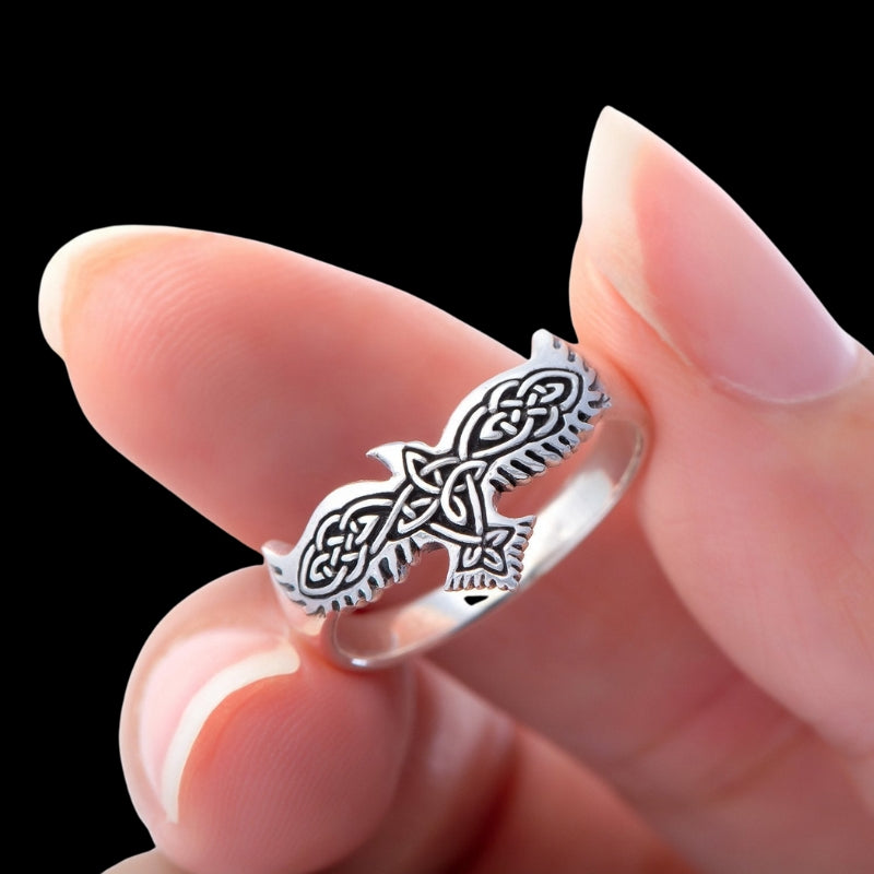 Raven Celtic Knotwork Silver Sterling Ring