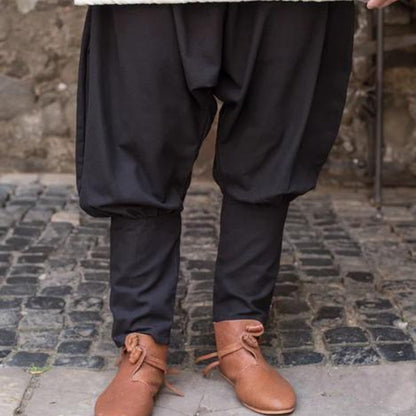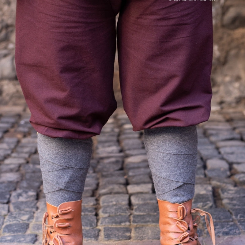Known for their adaptability, the Vikings tailored their clothing to suit both their environment and their vigorous lifestyles. These trousers exemplify that versatility and attention to detail, featuring a tapered calf design for a snug, yet comfortable fit around the lower leg ideal for dynamic movements without the bulk of excess fabric.