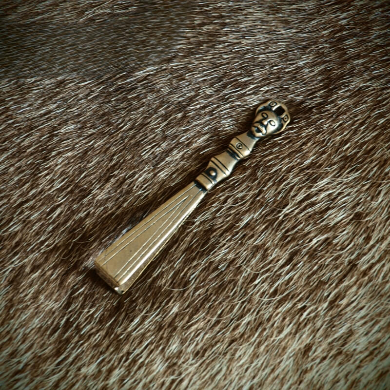 This curious pendant is more than just jewelry; it served as a practical tool for personal hygiene in ancient times. Inspired by archaeological finds from Gotland, Sweden, dating back to the 9th-10th centuries, this piece replicates a tweezer used in conjunction with other tools such as toothpicks and earspoons, forming a beautiful and functional hygiene set.