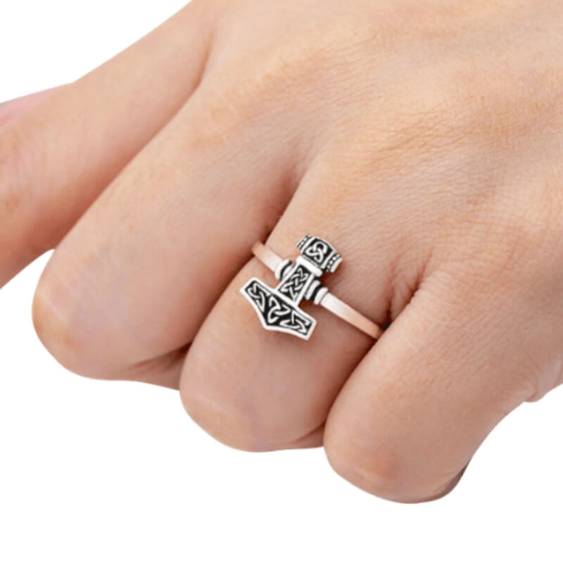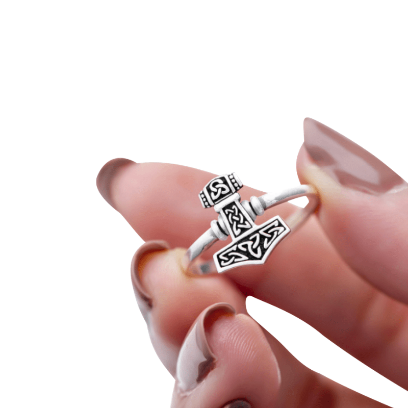 Shieldmaiden Thor Hammer Silver Sterling Ring