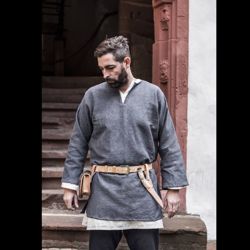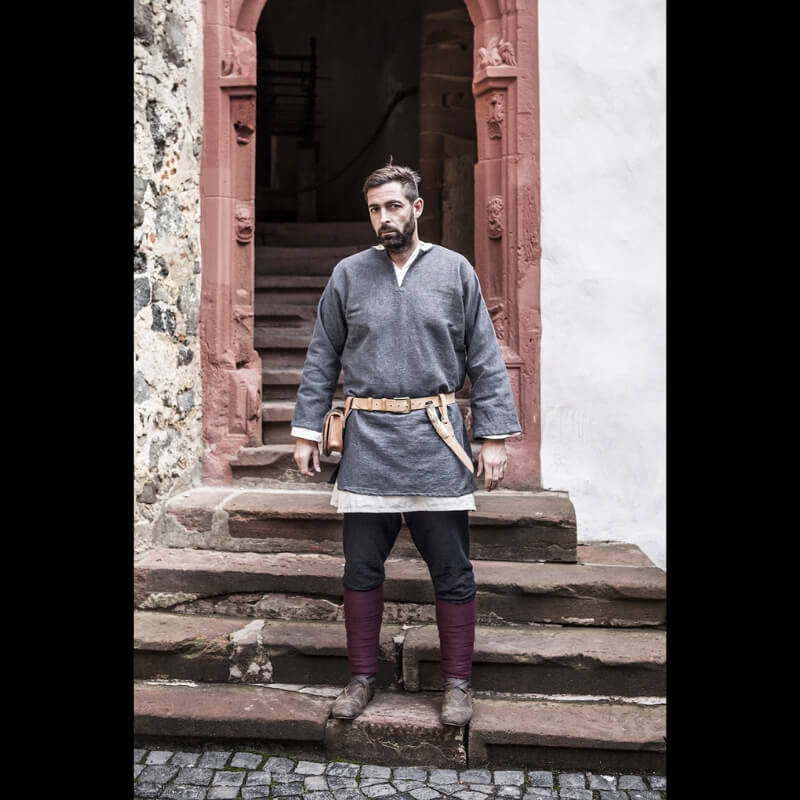 The Short Tunic Erik embodies the simplicity and practicality cherished by the Vikings. With its 3/4 sleeves and pure cotton fabric that mimics the appearance of linen, this tunic offers both authenticity and comfort. Reflecting the Vikings' practical approach to clothing, the Erik tunic combines functionality with style, featuring a straight cut, round neck, and slits at the neck and hem for enhanced wearability.