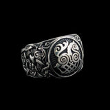 Embrace the mythological might of Sleipnir, Odin's famed eight-legged steed, with this sterling silver ring. Sleipnir, renowned in Norse mythology for its unparalleled strength, courage, and agility, symbolizes the power to traverse various realms, embodying a spirit of adventure and versatility.