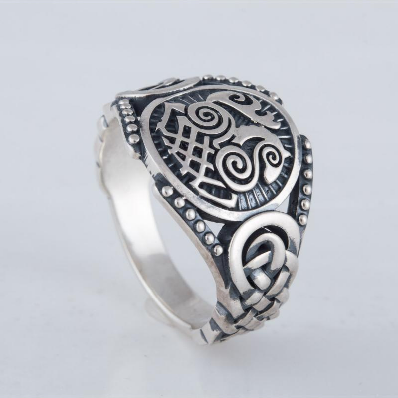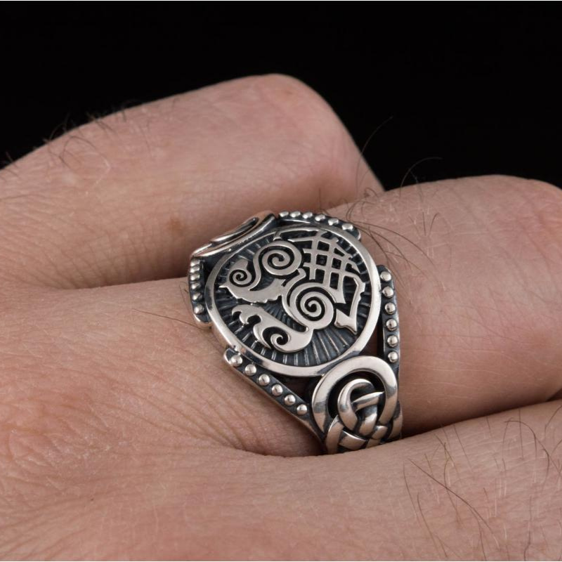 Handcrafted Sleipnir Symbol Viking Ornament Sterling Silver Ring
