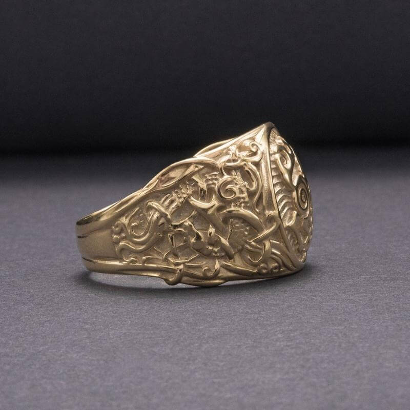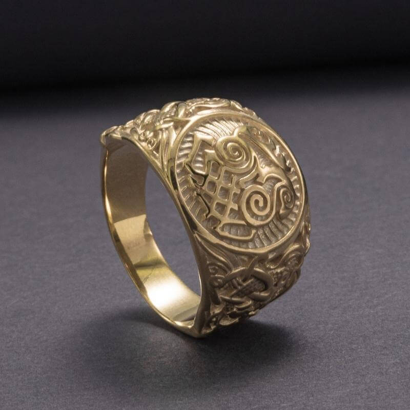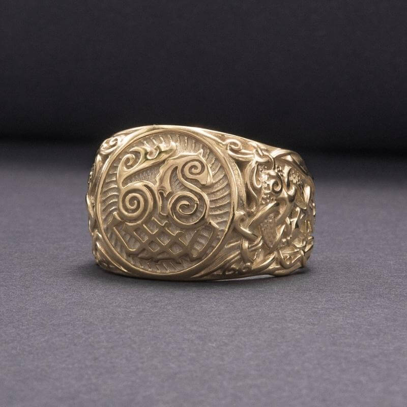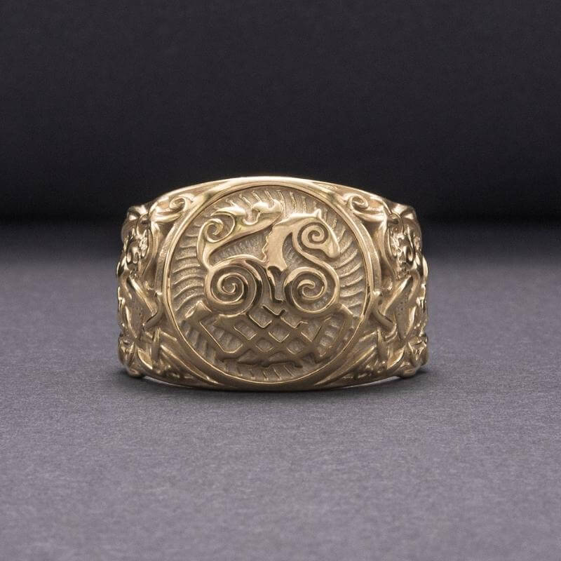 Handcrafted Sleipnir Urnes Ornament Gold Ring