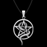 This powerful pendant brings together the sacred pentagram and the coiling serpent symbols steeped in both Wiccan mysticism and Norse mythology.