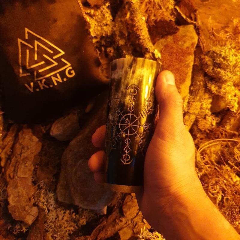 Each glass is individually crafted, ensuring every piece is distinct with its unique representation of Stjórn, a symbol associated with control, balance, and mastery in life. This uniqueness means that every sip is accompanied by a sense of balance and a reminder of the control and mastery one can achieve in life.