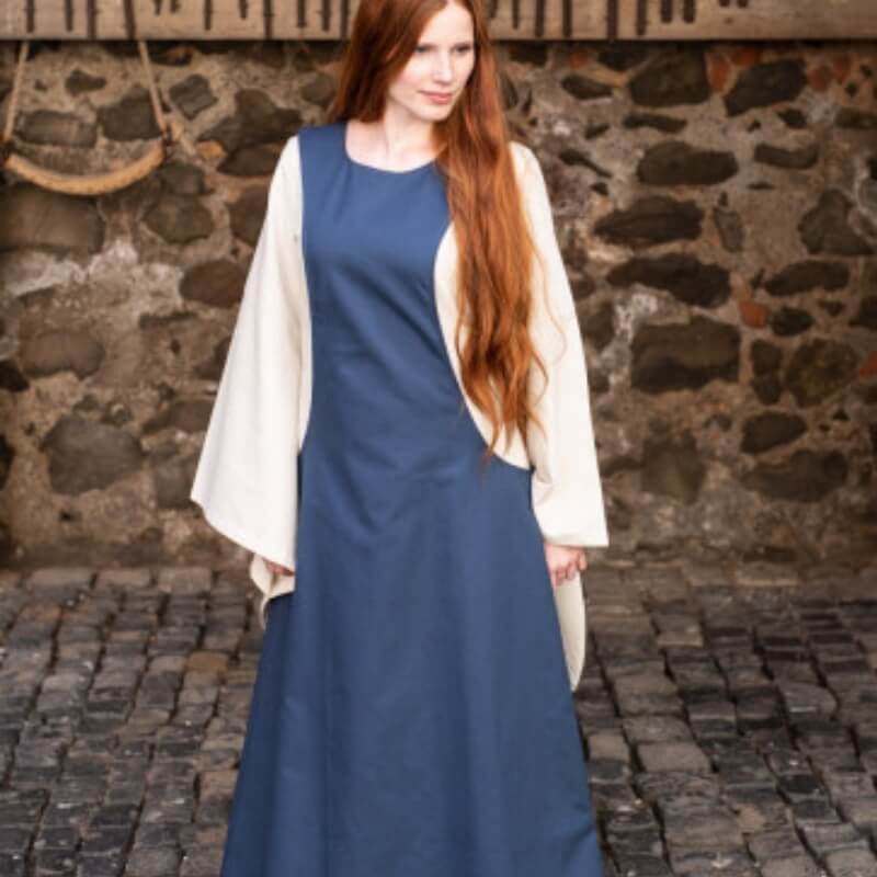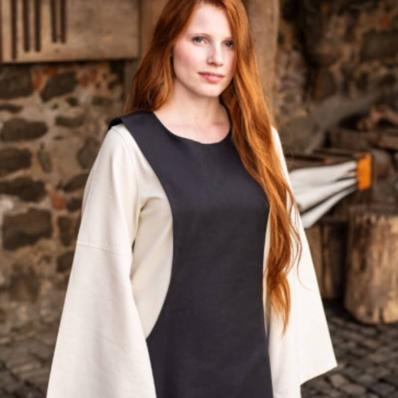 This surcot, crafted from a rough-textured yet comfortable wool fabric, brings an authentic medieval look to any ensemble. Historically worn over a cotte, a wide undertunic for both men and women, the Surcot Isabella stays true to its roots while providing a versatile piece for modern use.